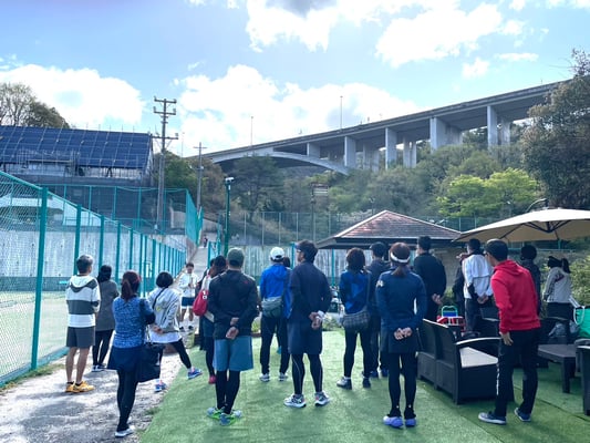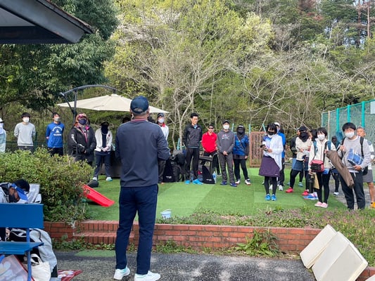 中山コーチの挨拶で幕を開けた「+place六甲オープニング記念大会」第一弾のミックスダブルス大会。
