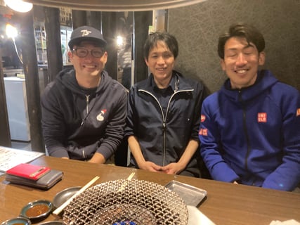 阪急春日野道駅改札口前のお肉屋さん「MEATS」(ミーツ)さんが経営する焼肉屋「BAKU2」(ばくばく)でテニス談議。 今後のイベントについてや諸々を語り合いました。 MEATSの田中専務を真ん中に挟んで記念撮影。 右は中山コーチ、左はTASU-clubで伸び盛りのnozomi君。 エンジョイROKKOの賞品となるお肉は田中専務の厳選です。...